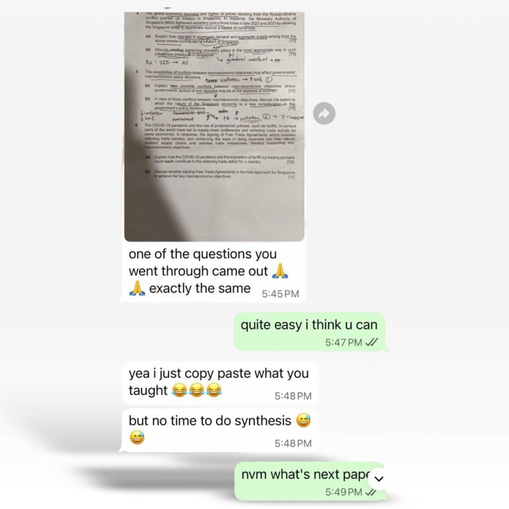 This allows his Economics tuition to focus on what examiners are most likely to test, not everything that could be tested.